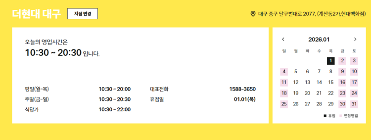 더현대대구휴무 현대백화점 대구점 이버달 휴무일 언제인가요